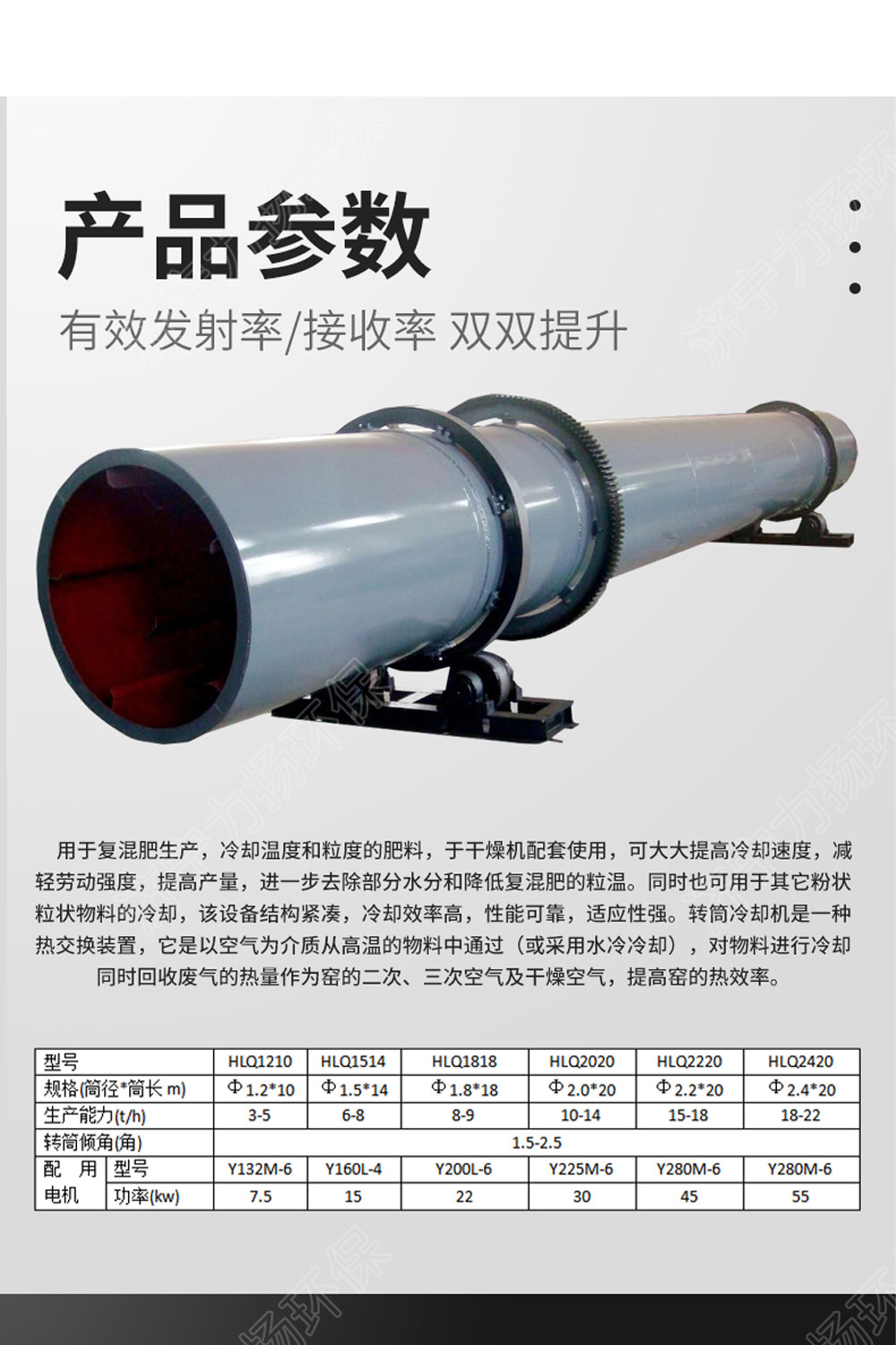 ?滾筒轉(zhuǎn)筒冷卻機(jī),將65-85℃顆粒有機(jī)肥通過(guò)優(yōu)化設(shè)計(jì)抄料板,將物料均勻地布滿筒體截面與冷卻空氣充分接觸,快速冷卻到接近常溫,使產(chǎn)品能及時(shí)包裝,防止產(chǎn)品儲(chǔ)運(yùn)結(jié)塊。